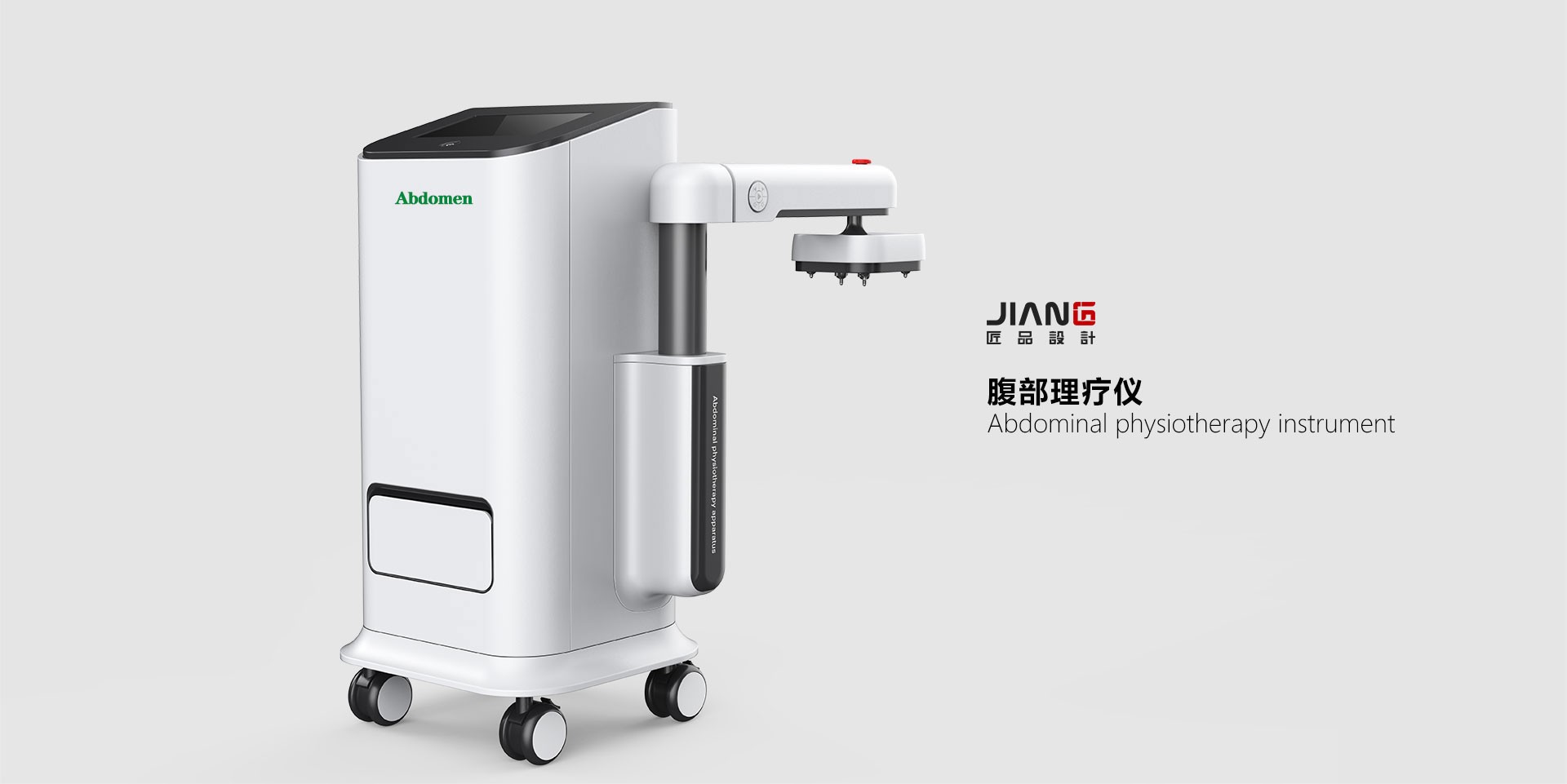 這款腹部理療儀用于女性的腹部治療和養(yǎng)護(hù),設(shè)計(jì)時(shí)考慮到一定的人體工程學(xué),使操作面板與水平面有一定的角度,便于操作者使用;橫臂可根據(jù)實(shí)際需求調(diào)整角度,方便患者上下床。外觀形態(tài)簡潔大方,安全穩(wěn)重,以白色為主,符合醫(yī)療行業(yè)的風(fēng)格和要求。柔和的線條區(qū)別于冰冷的器械,打造出親和感,大大降低了患者心理的壓迫感。
