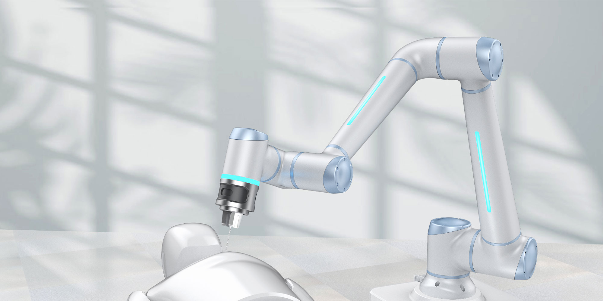 這款協(xié)作機器人的設(shè)計簡約大氣,流暢的線條凸顯產(chǎn)品的“精練”,提升產(chǎn)品的可靠性。淡雅的配色給人以親和的感覺,符合醫(yī)療器械安全干凈的特點。