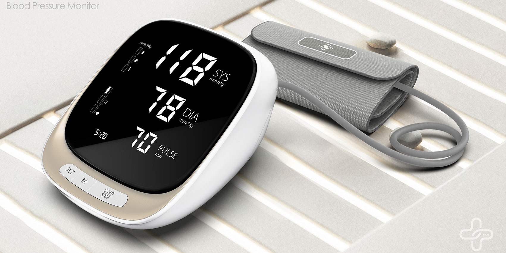匠品設計的這款血壓計通過化繁為簡,讓操作更簡單,老年人也可以輕松使用。用圓潤的曲線賦予產(chǎn)品親和力,暖色調的按鍵區(qū)增加了產(chǎn)品的溫度,增強整體的外觀辨識度。考慮老年人的視力問題,我們采用高清大屏液晶顯示屏,讓用戶的注意力更容易集中在屏幕上,方便讀取數(shù)據(jù),看清測量結果。環(huán)繞筒狀袖帶與手臂巧妙貼合,佩戴舒適。