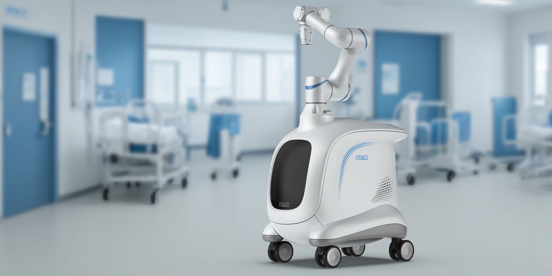 這款骨科手術(shù)機器人整體設(shè)計簡潔大方,線條流暢,彰顯科技感與專業(yè)感。機身主體采用純凈的白色,這一經(jīng)典的醫(yī)療色彩,不僅傳遞出潔凈、安全的理念,也與醫(yī)院的整體環(huán)境相適配,給患者帶來心理上的舒適與安心。在白色基調(diào)之上,點綴以藍色線條,藍色象征著冷靜與智慧,為機器人增添了一份靈動與科技氛圍。
