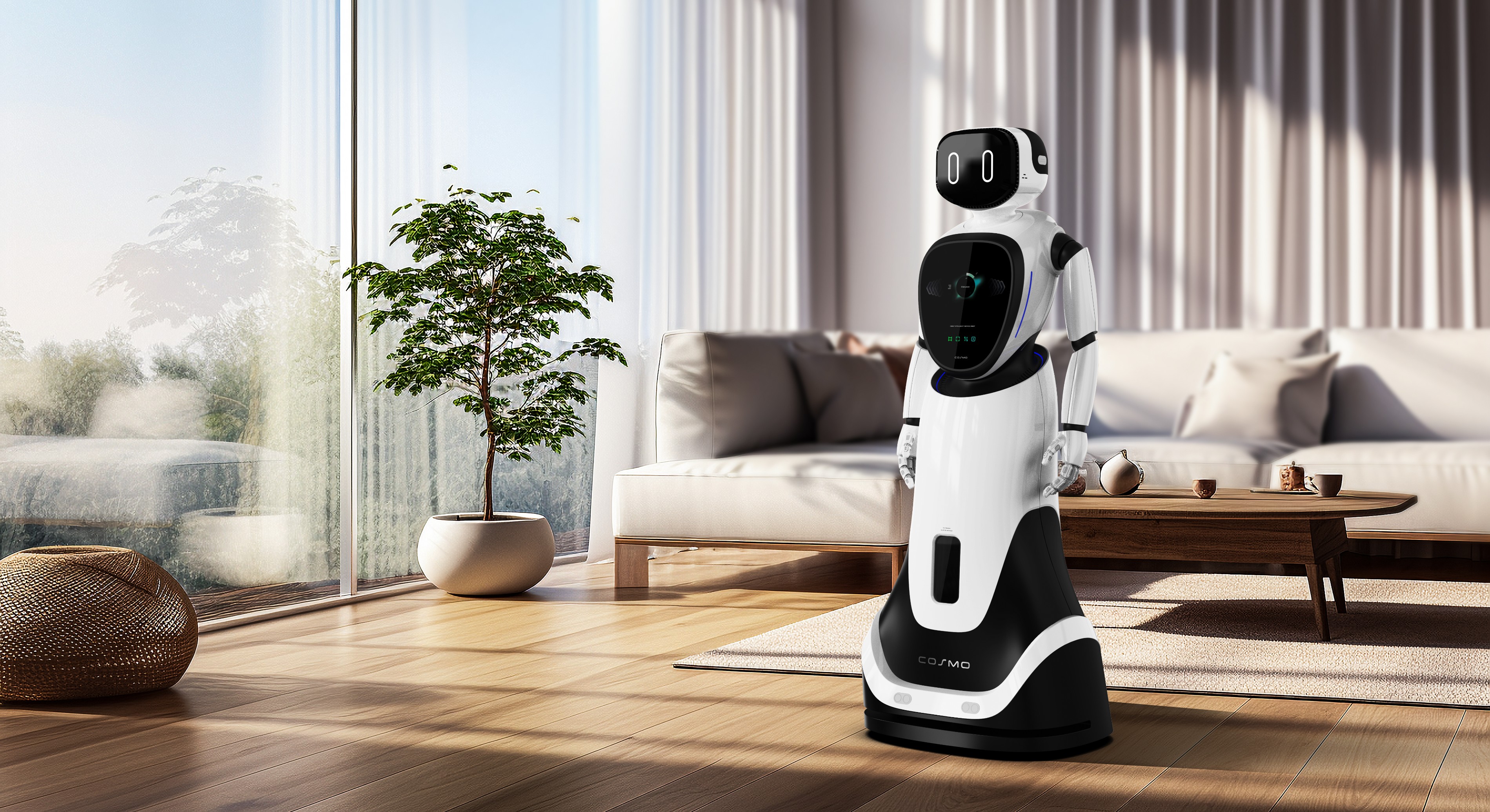圖中的人形機器人,它的外觀設計極具未來感與科技感。整體以白黑為主色調,搭配流暢線條,營造出簡潔大氣的視覺效果。頭部造型獨特,帶有類似“眼睛”的顯示區(qū)域,增添了靈動性。身體部分有顯示屏,可展示相關信息,手臂等關節(jié)設計精巧,既保證了機械結構的實用性,又讓整體外觀更具協(xié)調性,仿佛是從科幻世界走來的智能伙伴,能很好地契合各類科技場景的應用需求。